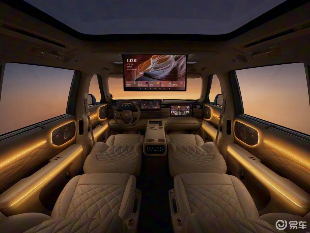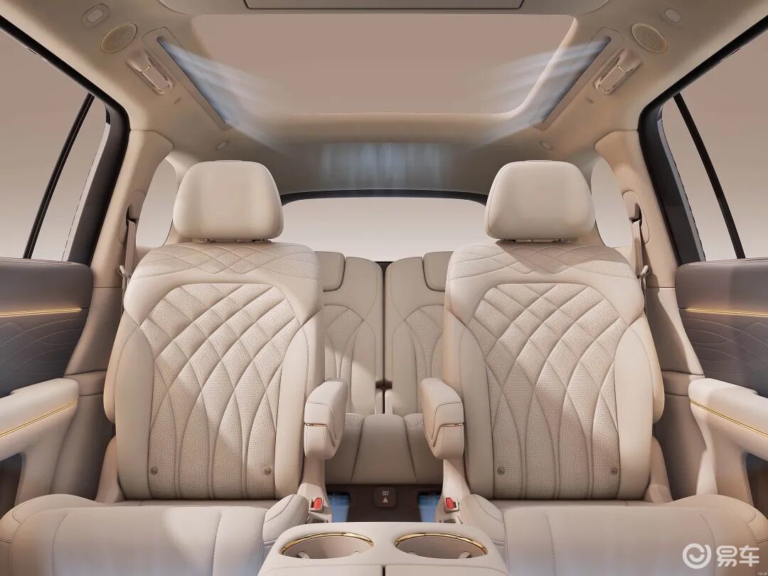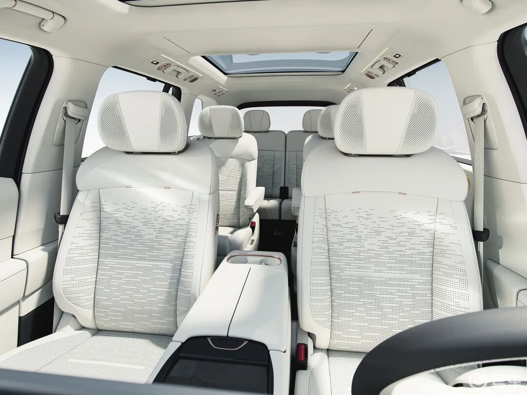 内饰方面,两款车型均展现出了旗舰级的用料水准。智己LS9采用大地象灰主题内饰,有深、浅两种配色可选,以豪华、舒适为核心。内饰中大面积采用了Nappa真皮包裹,搭配金属镀铬条点缀,触感细腻温润。座椅采用IM Nappa DELUXE 臻奢高定头层真皮,内部填充高密度海绵,还标配了通风、加热、按摩功能。值得一提的是,智己LS9三排六座的座椅靠背均可调节角度,后排纯平地板可让儿童直立行走。后备箱常规容积372L,最大可扩展至1030L。