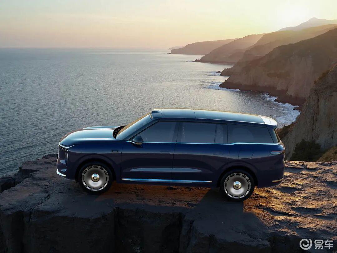 智己LS9延续了品牌感性、优雅的设计语言,整体造型优雅大气。前脸采用封闭式格栅搭,配行业最长的超感星轨贯穿式灯带,极具辨识度。车身侧面呈现游艇巡航姿态,围绕车身的精致镀铬腰线流畅自然。标配20英寸轮毂营造出行政级车型的沉稳气场,此外还有21英寸和22英寸的大轮毂可选。车尾的Skyline贯穿式尾灯与车头形成呼应,下方镀铬装饰简约精致。车身尺寸方面,智己LS9长宽高分别为5279mm、2000mm、1806mm,轴距达到3160mm,妥妥的大型SUV规格,也为车内空间奠定了良好基础。