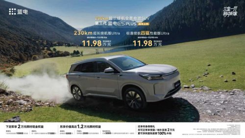 12月3日,第三代蓝电E5 PLUS正式上市。新车凭借“12万内唯一230km超长纯电续航”、“15万内唯一电混全时四驱”、行业首创的“轮上三室一厅”场景生态,以及“深度融合豆包大模型的智能座舱”四大差异化优势,为用户打造出全新的场景化出行体验。新车推出230km超长续航版Ultra与标准续航四驱性能版Ultra两款车型,实现“入门即顶配”,两款车型官方指导价均为13.98万元,限时换新价仅11.98万元。购车用户另可享1.2万元限时权益,并正常享国家及地方至高2万元补贴;同时,更享2025年12月31日前购置税差额100%补贴,以十足诚意让全场景高品质出行惠及更多家庭。