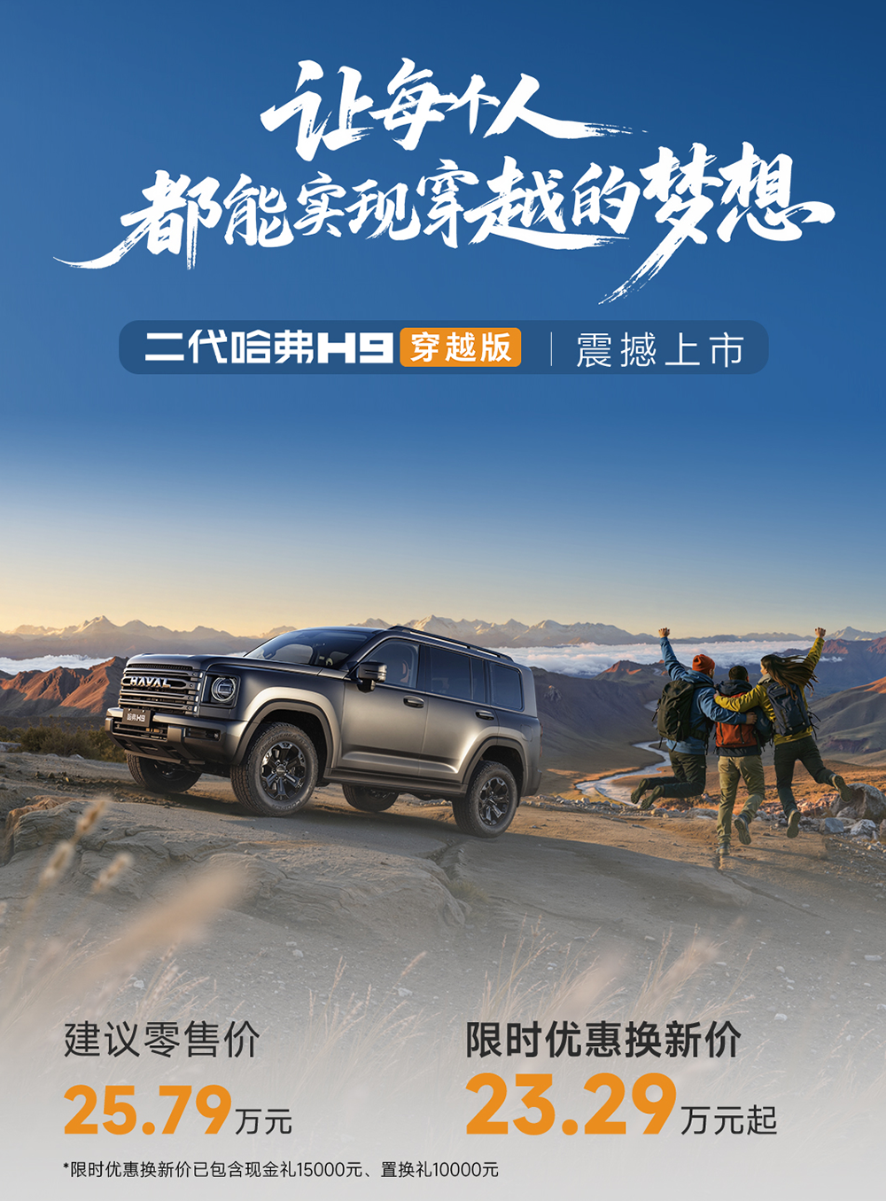 总结:二代哈弗H9穿越版的上市,精准切入长途穿越细分市场的核心需求,以“长续航、高可靠、全舒适”的产品特性,打破了豪华品牌海外版车型垄断大油箱、高通过性配置的壁垒,让专业越野配置实现“平民化普及”。