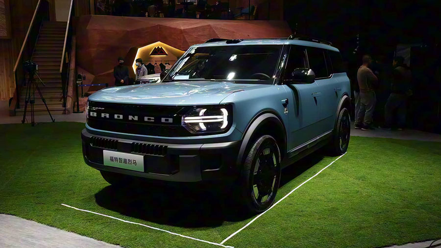福特智趣烈马是江铃福特为满足中国市场消费者需求而打造的一款新能源SUV,其外观与同胞福特Bronco Sport车型相似,车辆整体为方盒子造型,同时加入了一些城市化的元素,使其看上去更加符合日常家用代步需求。新车采用了与左右两侧前大灯连成一体的长条形的前格栅,车头有BRONCO的发光字幕标识,同时配合两侧极具辨识度的车灯,让其辨识度得到很好地提升。前包围造型看上去颇为粗壮,并在局部加入了与车身同色的装饰面板进行点缀。此外,新车还将配备车顶激光雷达等硬件设备。