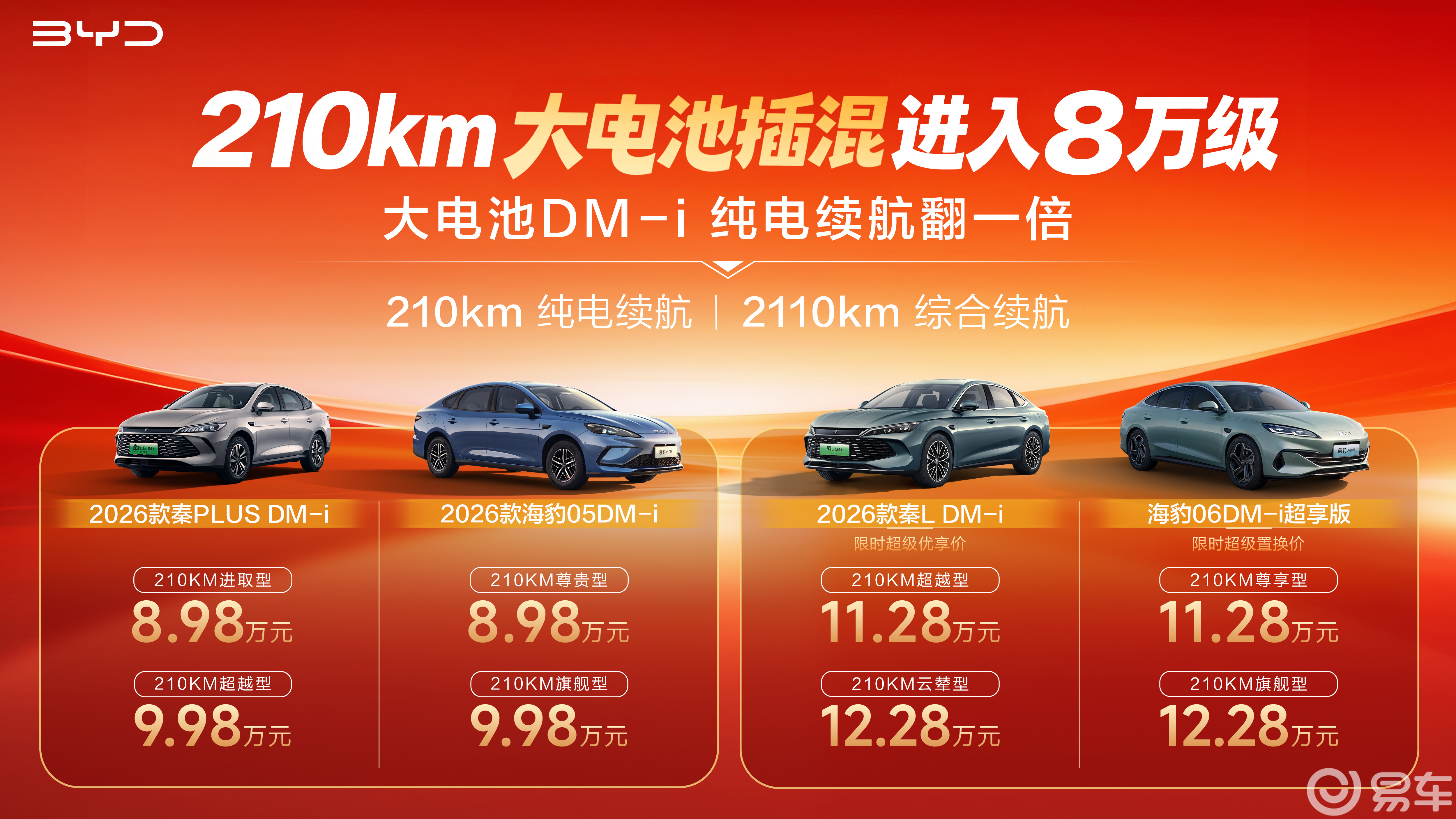 作为插混技术开创者,比亚迪插混车型累计销量已超786万辆,占据中国市场半壁江山。2026年开年即以“大电池DM-i”开启全民长续航时代,既是对其“技术为王、用户为本”理念的践行,也为加速油转电、引领新能源高质量发展注入强劲动能。当210km纯电续航成为8万级家轿标配,属于中国家庭的绿色出行新时代,已然到来。