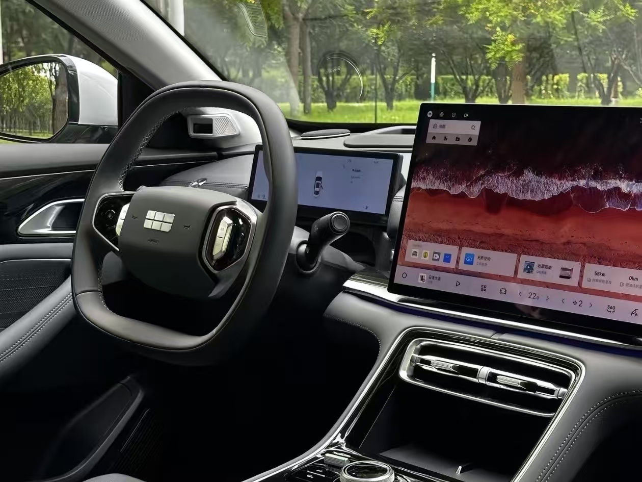 银河A7同样也是除了低配车型,其他版本都配备了千里浩瀚辅助驾驶H3方案,配备11个高清摄像头、3个毫米波雷达、12个超声波雷达,高速路段和城区路段都能开启智驾,是三台车里场景覆盖度最高的。