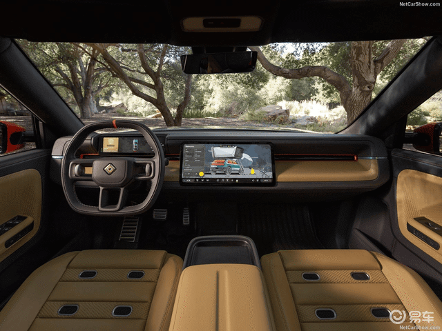 外观上延续了Rivian一贯的简约设计,贯穿式灯组合椭圆形的大灯显得格外可爱,同时车身只用了一些浅棱线来营造立体型面。车身侧面设计依然保持了方正的姿态,而粗壮的C柱设计是Rivian的家族特征,也很有美式越野车风格。