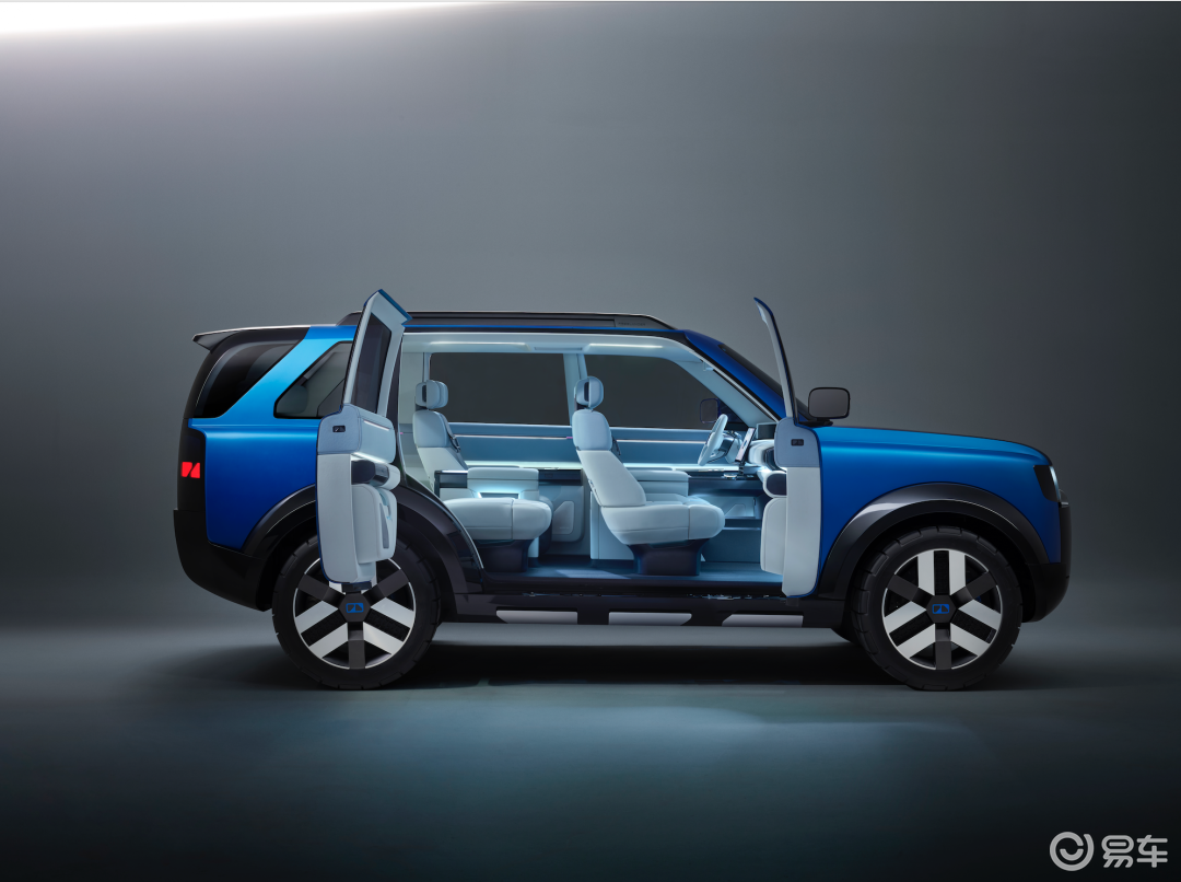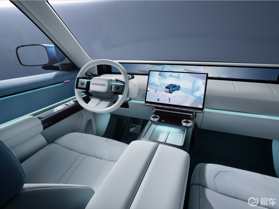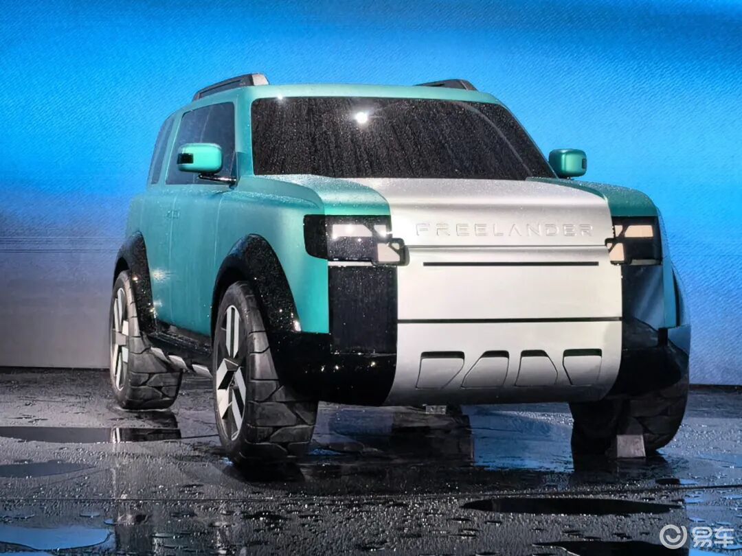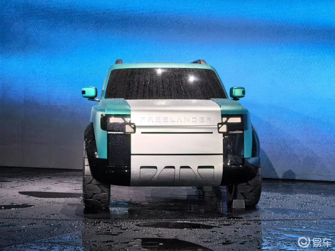 Concept 97车名呼应1997年推出的初代路虎神行者,外观采用接近路虎卫士的“方盒子”造型,封闭式前脸还隐藏式横向格栅条,中央为“FREELANDER”字母车标。纵置矩形前大灯内部应用像素化LED光源,支持智能交互,前包围下护板融入品牌图形设计。车身配色方面,新车提供冰川蓝、千山翠两款配色。