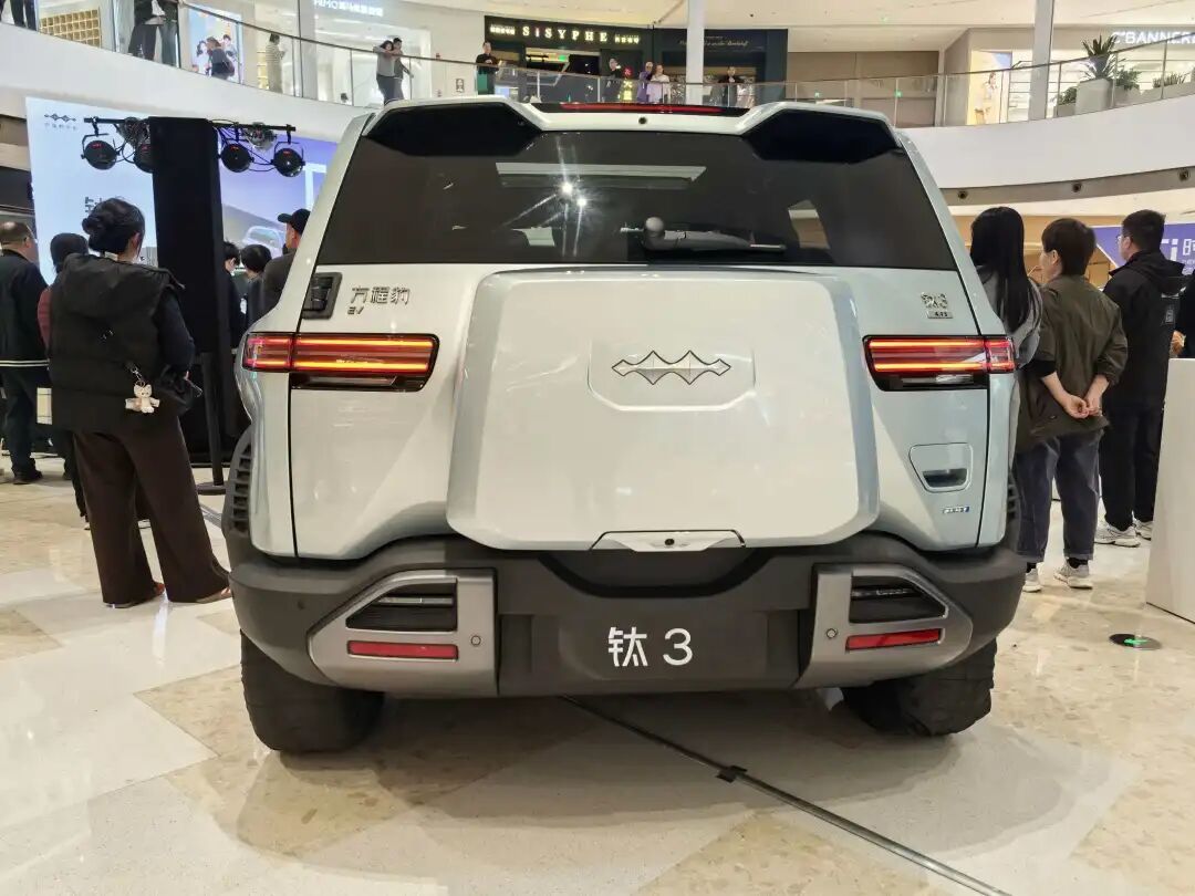 方程豹钛3闪充版延续了硬朗方盒子造型,棱角分明的线条与外凸翼子板,打造出强烈的机甲质感,契合当下年轻用户对个性硬派设计的偏好,同时细节优化更贴合日常使用场景。前脸采用熏黑格栅搭配运动下包围,平行排列的日间行车灯辨识度极高,夜间点亮后视觉效果出众;车尾延续标志性“小书包”设计,内置28L外挂式储物盒,既能存放杂物,又能彰显硬派格调,尾门预留“万象插孔”,可自由安装旗杆、运动相机等,适配户外爱好者需求,尾门采用侧向开启结构,搭配双层扰流板,兼顾实用性与空气动力学。