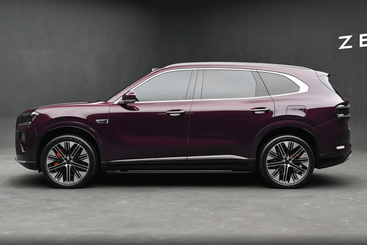 来到车身侧面,极氪9X和极氪8X之间的关系与问界M9和问界M8的关系有些不同,例如极氪8X定位中大型SUV,而且整车的尺寸与极氪9X有较大的差距,所以从图中也不难发现,极氪8X想要通过相对紧凑的车身布局,营造更强的运动感。从尺寸上来看,极氪8X的长宽高为5100/1998/1780mm,同时车身轴距来到了3069mm。