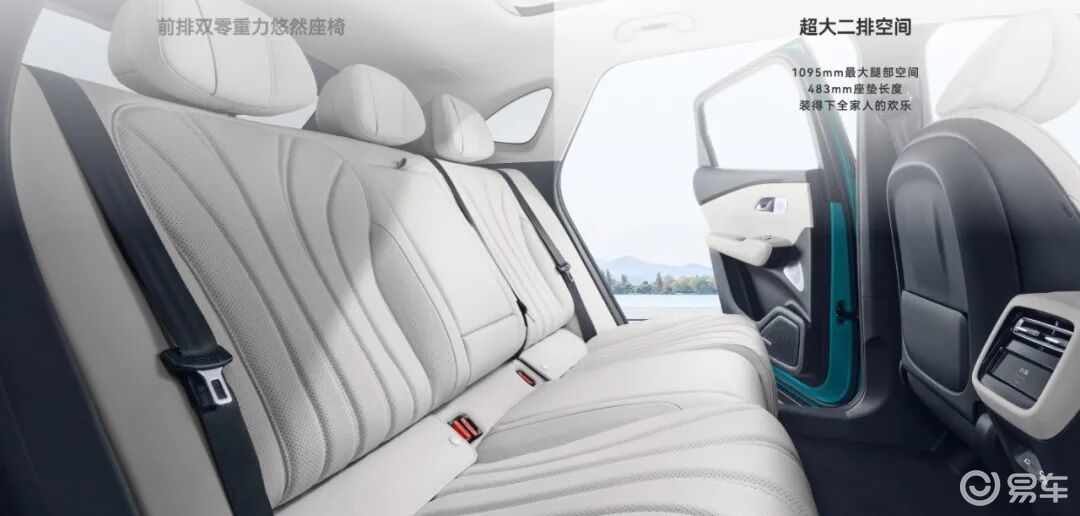 同时,第二排直接做到 1095mm 的腿部空间;后备箱 573L ,最大可以扩容到 1597L ;对了。前后排可以放倒成大双人床。