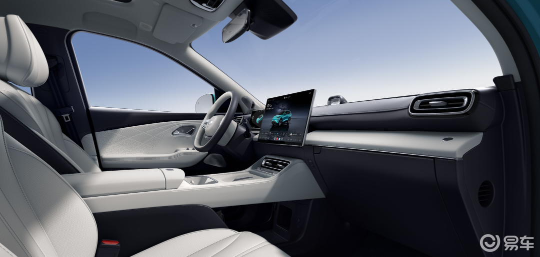 车内的设计也比较简约,10.25 英寸液晶仪表、15.6 英寸悬浮式中控屏,高配车型可以选装 17.3 英寸吸顶式后舱娱乐屏。