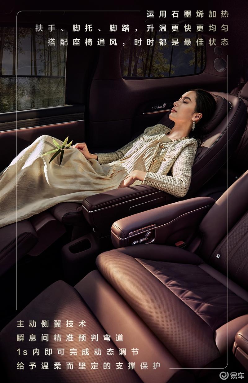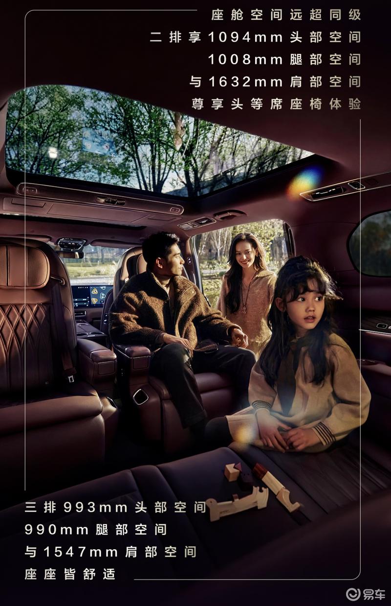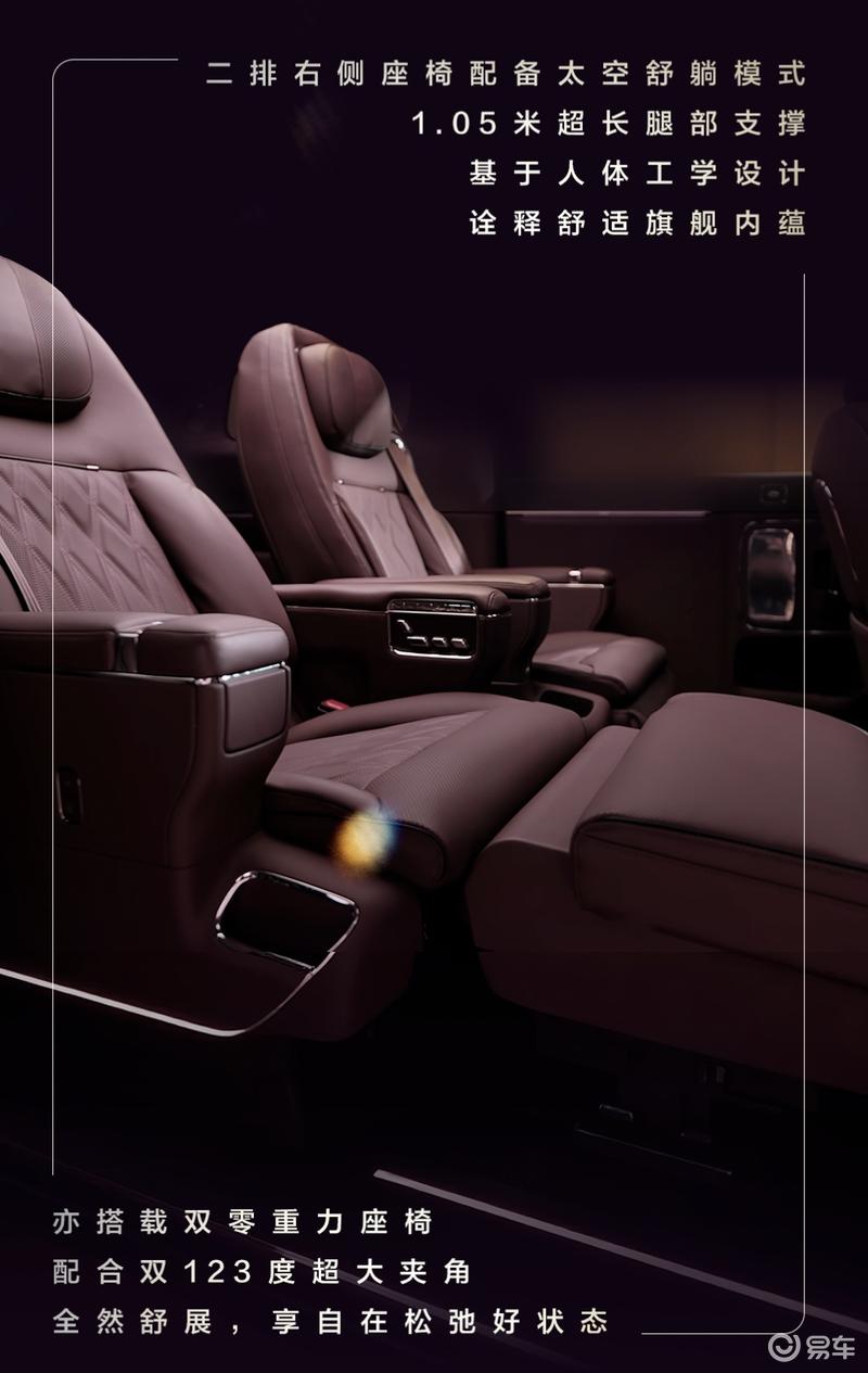 其中二排双零重力座椅还支持45度旋转迎宾、90度及180度旋转,打造多变格局。此外,二排还首发搭载环抱式安全气囊。